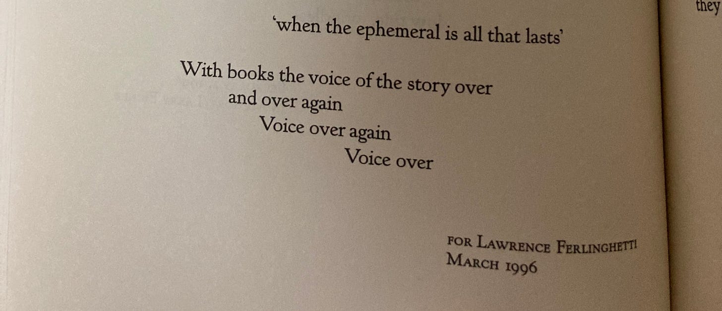 Now we’re getting closer to the present. In October I went to Unnameable Books in Brooklyn and bought and read the essay-poem Justice Piece/Transmission by Lauren Levin. I read Nineties: A Novel With No Moral by Lucy Ives. I read Annie Ernaux’s novella A Simple Passion in a sitting in the Jefferson Market Library in NY while waiting to get on Amtrak. I saw Madeline ffitch read at UMass and then bought & read her book Stay and Fight. I read Doctor Williams’ Heiresses by Alice Notley one day recently. My partner’s mom gave me Louise Gluck’s Rose and Marigold: A Fiction, which I read last week. And, in what will probably be my final book of 2025, unless I finish Kate Riley’s Ruth before New Years, I read Lauren Elkin’s Scaffolding this past week/end.